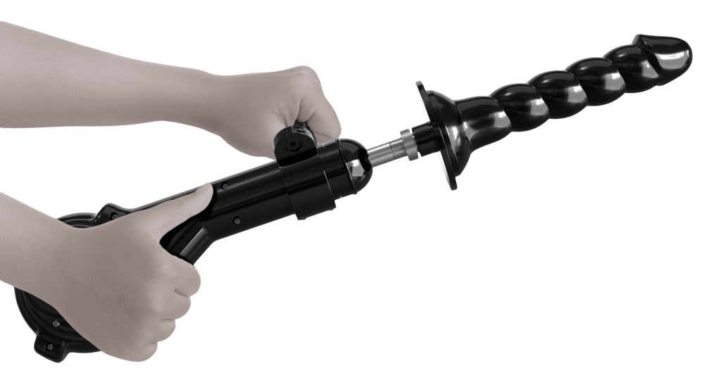 For endless thrusting pleasure – standing up, sitting down or lying down! The mains-powered Body Dock Pro Sex Machine from Fetish Fantasy Series is in a compact and narrow size and it also comes with a remote control, dildo and mini vibrator. The sturdy but light sex machine sticks securely to any smooth surface because of its suction cups. It can also be adjusted 360° to suit anyone's needs – for hands-free fun in any position! The thrusting machine can also be removed from the frame so that it can be used with a partner – one person holds the thruster. The included dildo has a suction cup, which sticks perfectly to the patented Push & Play docking plate (Ø 8.9 cm). This means that the grooved dildo can be quickly and easily attached to the sex machine's thrusting arm. Any conventional toy with a suction cup (e.g. dildo, vibrator, masturbator) can also be easily attached to the docking plate. The thrusts have a stroke length of more than 6 cm and they can be easily adjusted with the remote control. The sex machine has a perfect speed for everyone – from extremely slow and gentle thrusts to 200 thrusts per minute. Furthermore, there is also a mini vibrator for additional stimulation during hands-free thrusting pleasure and a 240 V power adapter for reliable power from the mains. Sex machine (55.9 x 31.1 cm) with an extending rod (22.9 cm long). Docking plate Ø 8.9 cm. Weight 1.8 kg. Metal, ABS, PVC. Suction cup dildo 19 cm long. Vibrator 10.2 cm long.