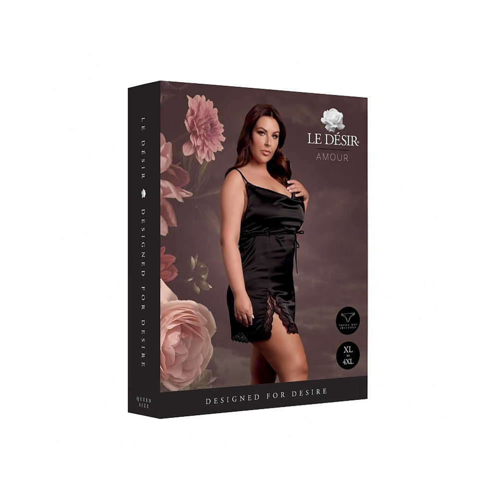 LE DESIR OPEN BACK SILK DRESS WITH CRISS CROSS DETAILS AND SLIT BLACK QUEEN SIZE