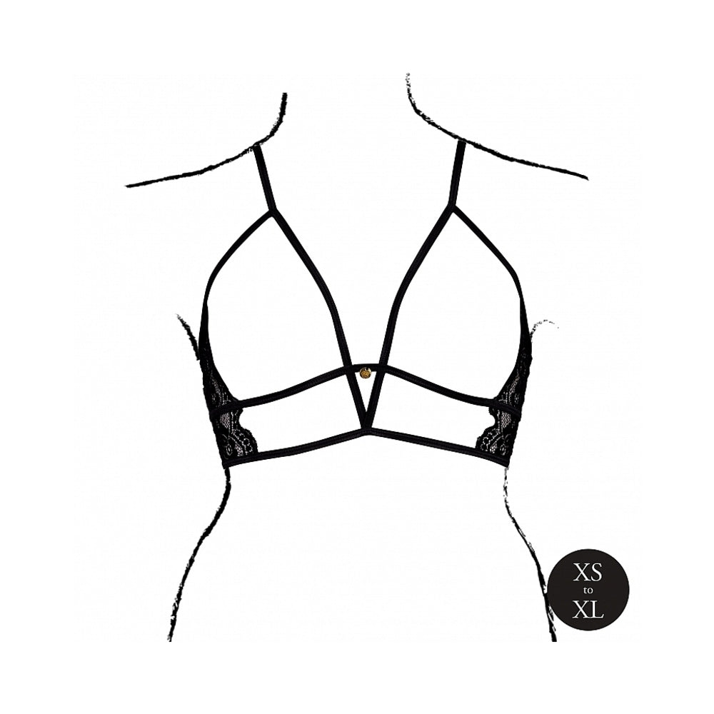 LE DESIR OPEN CUP TRIANGLE BRA WITH LACE AND ADJUSTABLE SLIDERS BLACK O/S