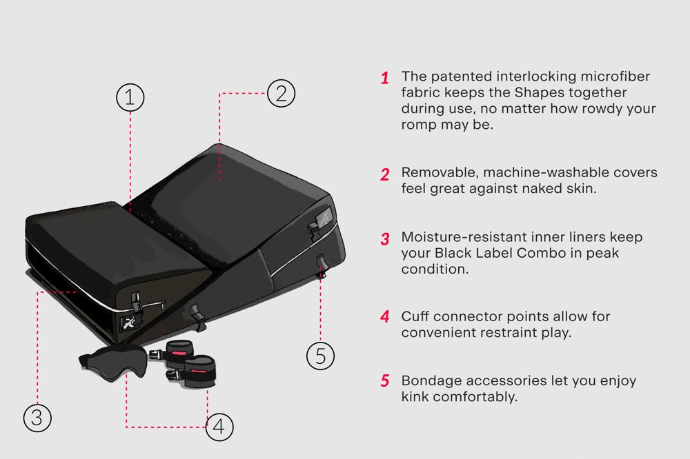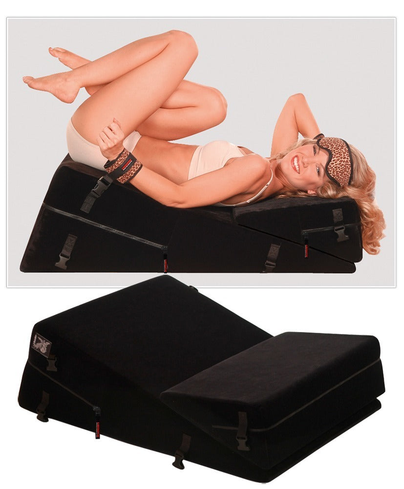 Captivating and diverse for deeper penetration and new positions! The 2 anatomically-shaped, wedge-shaped sex cushions that make up the Wedge/Ramp Combo from Liberator has 4 adjustable and removable restraints – handcuffs & ankle cuffs. A blindfold is included. The soft microfibre covers on the cushions 'stick' to each other. The covers can also be removed from the moisture-resistant cushions for cleaning. Wedge size: 61 x 35.5 x 17.75 cm. Ramp size: 86.4 x 61.0 x 30.5 cm. Cushions: PU foam. Covers: polyester (suitable for the washing machine).