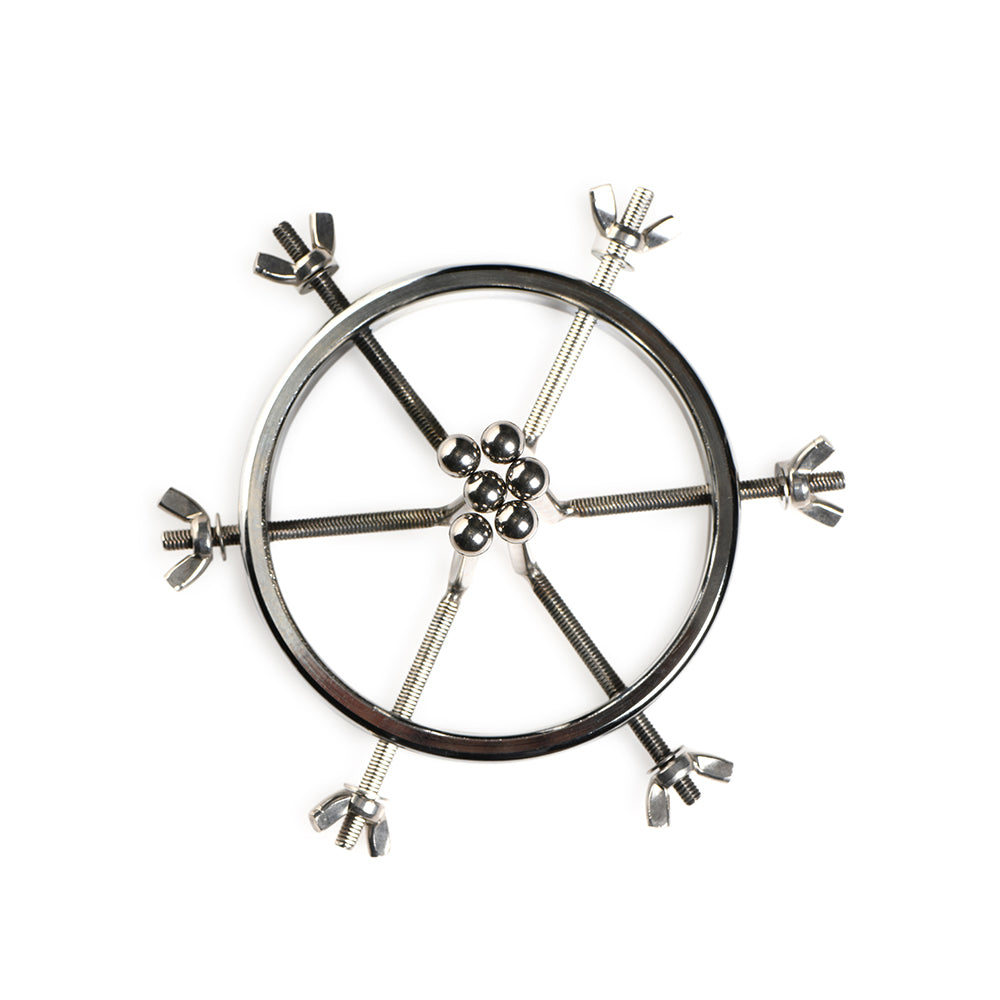 This stainless steel anal explorer is perfect for those into medical play who want to expand and stretch open their backdoor! Made out of strong, durable, non-porous, nickel-free steel, it''s compatible with all lubricant types and is nonporous. The Anal Explorer consists of one large ring with a diameter of 4.1 inches and 6 dilators that have smooth rods with small, round, balls on the ends of them. Insert it almost 3 inches deep and spread their hole wide open! The ring is wide enough for you to fit your fist through, as well! Each dilator rod can be adjusted individually using the wingnuts to tighten or loosen the position on the screw. Only the smooth steel will be pressing against the sensitive tissue of the anus while the spiraling screws are outside against the buttocks. To clean after use, rinse with warm water and mild soap or boil it in water. Then spray it with isopropyl alcohol and wipe clean.Grab plenty of your favorite lube and prepare the Anal Explorer by rubbing the round ball ends and rods with it. Don''t let any get on the wingnuts or it will be difficult to grip them to adjust. Insert it inside the anus while the dilator prongs are close together and not expanded. Once inside, slowly adjust to widen and expand. Do this slowly and add lube as you get wider. Listen to your partner and remind them to breathe. Do not go beyond their limit or it can cause tearing. If you can open it all the way, you can try fisting. Make sure your nails are trimmed and there are no open cuts on your hand before dipping your fist in lube and going inside. Have fun and play safe! Stainless Steel Expander: This durable, non-porous, steel anal expander will last years, is nickel-free,, and is compatible with any lubricant type. Six Dilators: There are six dilators with round, ball ends on them that can be adjusted from 1 inch to 4 inches in diameter using the wingnuts. Perfect for Fisting: The ring is wide enough around to fit a fist, so enjoy widening your partner''s hole in preparation for getting inside! Measurements: Insertable length: 2.9 inches. Dilators expand from 1 inch to 4.1 inches in diameter. Center ring inner diameter: 4.1 inches.