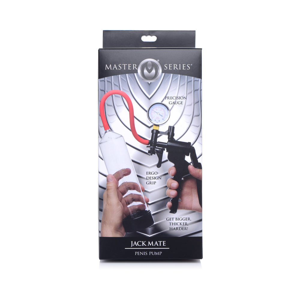 You will be amazed by the look and feel of your penis as it grows bigger and more sensitive! This no-nonsense pumping set includes an ergonomic hand pump with a built-in pressure gauge, as well as a flexible and durable silicone hose. The bright red tubing connects to a 9 inch cylinder with measurements along its length to show your gains as you get longer and girthier. The optional seal at the base helps you create a tighter and more pleasurable seal, made even better with a little bit of lube. When you are satisfied with your engorgement, a quick release valve will instantly decrease the suction, freeing your ultra-sensitive penis for more hands-on play! TPR Seal Measurements on Cylinder Built-in Pressure Gauge Trigger Handle Pump Material: TPR, silicone, ABS plastic Measurements: Cylinder is 9 inches in overall length, fits up to 8.5 inches, with a diameter opening of 2.15 inches. Hose is 10.3 inches in length.