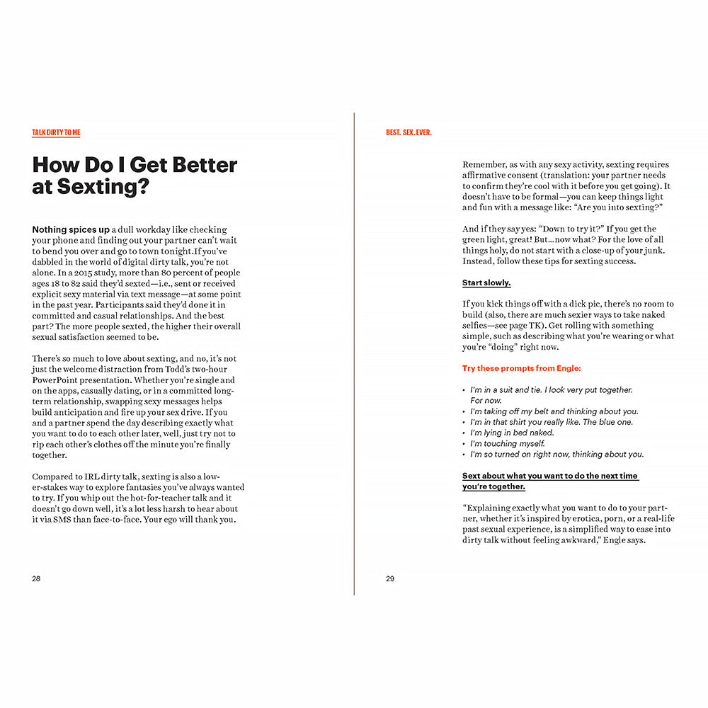 Men''s Health Best. Sex. Ever. 200 Frank, Funny & Friendly Answers About Getting It On By Men''s Health (Edited by), Jordyn Taylor, Zachary ZanePaperback; 208 pagesA fun, inclusive guide to satisfying sex for all men, jam-packed with expert advice, game-changing insights, and sensational sex positions.You know you want it: More. Better. Hotter. But the editors at Men''s Health know you also have a lot of questions, especially as cultural ideas about gender, sexuality, and "taboo" desires have started to shift, making sex a little more complicated, too. Jordyn Taylor, Men''s Health''s sex and relationship editor, and sex expert Zachary Zane, tapped the top sex professionals for the best advice about getting it on.No matter your preferences or what you''re into, and whether you''re single or in a relationship or several relationships at once, Best. Sex. Ever. is your funny and friendly authority on having awesome sex. You''ll find the answers to pressing questions like: Is dirty talk problematic in a post-#MeToo world? (Nope. As long as your partner is into it, curse away, my dude.) What''s the secret to taking a really good nude? (See: our illustrated guide to the best-ever selfie positions!) Is it weird that I''m a straight guy who wants to try butt stuff? (Only if you hate the mind-blowing pleasure of prostate massage.) Are my kinks normal? (Definitelyand we''ll show you how to try them.) What''s the sexiest way to ask for enthusiastic consent? (Yup, it can be sexy.) Complete with sex position illustrations, juicy anecdotes and honest myth-busting advice for open-minded, sex-loving guys, this book is bursting with insights on achieving pleasure with your partner(s)–every single time.