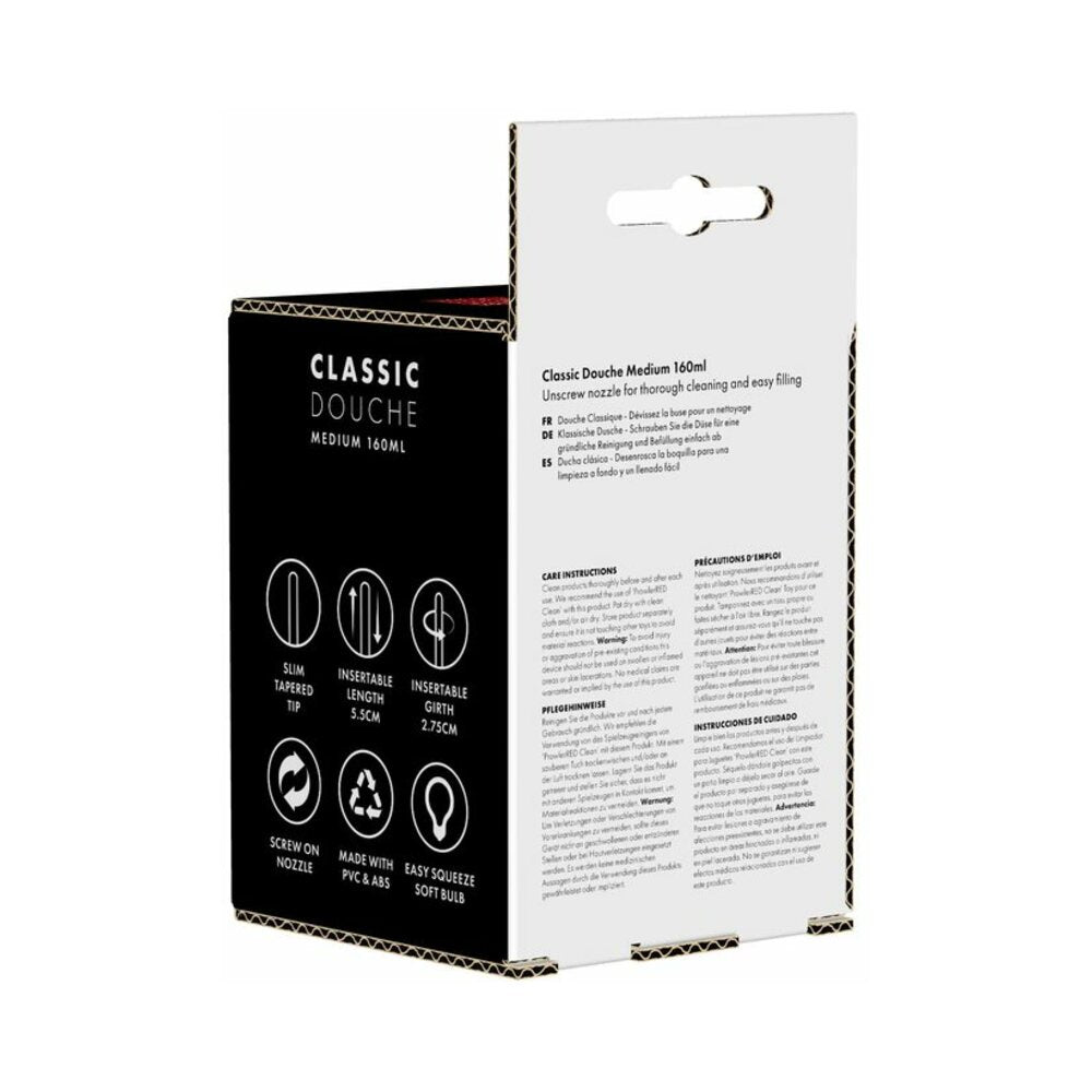 Prowler RED Bulb Douche is a classic douche. Featuring a PVC bulb and ABS plastic nozzle which can be cleaned easily and is simple to fill up and use. The base of the bulb is flat to enable standing it upright when needed. To fill, simply remove nozzle and hold under running water. Available in small, medium and large sizes in black.Measurements (approx.) Insertable Length: 5.5cm Insertable Girth: 2.75 Medium - 160ml