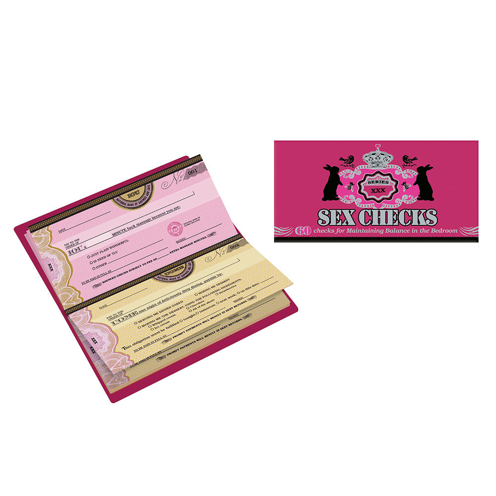 Sex Checks 60 Checks for Maintaining Balance in the Bedroom By Potter Gift60 pagesWho says money can''t buy you love?Issued by the "World Bank of Savings and Love" these playful checks offer a diverse portfolio of options for the shy and adventurous alike, with fill-in-the-blanks and check-box prompts. The checkbook includes 30 IOUs and 30 UOMEs, making it easy for you to get back what you give. Best of all, these checks are guaranteed not to bounce (unless you''re into that)!
