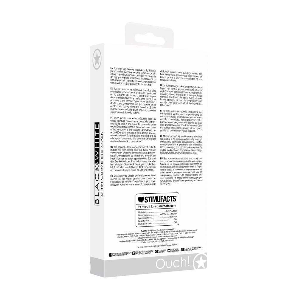 SHOTS - OUCH! BLACK & WHITE SATIN CURVY EYE MASK WITH ELASTIC STRAPS BLINDFOLD BLACK