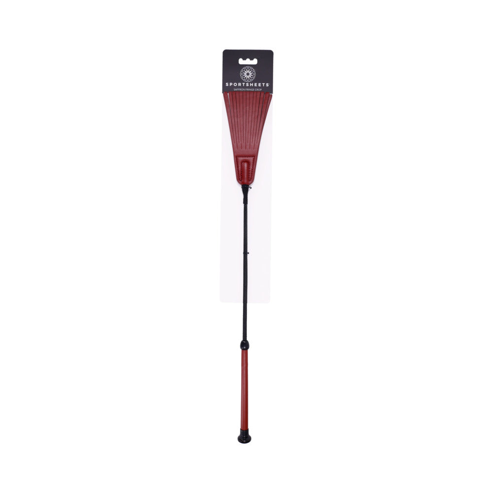 Take charge and guide your bottom with authority and the satisfying smack of the Saffron Fringe Crop. Uniquely tailored to provide swift punishments with a firm and flexible shaft, the dual layered tip splits into 12 tassels for varied sensations catered to heighten the experience no matter the scene. Use the tip for ticklish brushes to every erotic zone and tease your partner with soft rhythmic taps for the ultimate sensory experience. Teach your partner to be the perfect submissive and embrace the playful dominance as you enact the perfect punishments.Features 23.75in. long crop 2.75in. wide crop tip with 12 tassels Stiff faux leather for satisfying smacks Materials: 30% PU, 30% PVC, 20% Glass fiber, 10% Polyester, 10% Zinc alloy