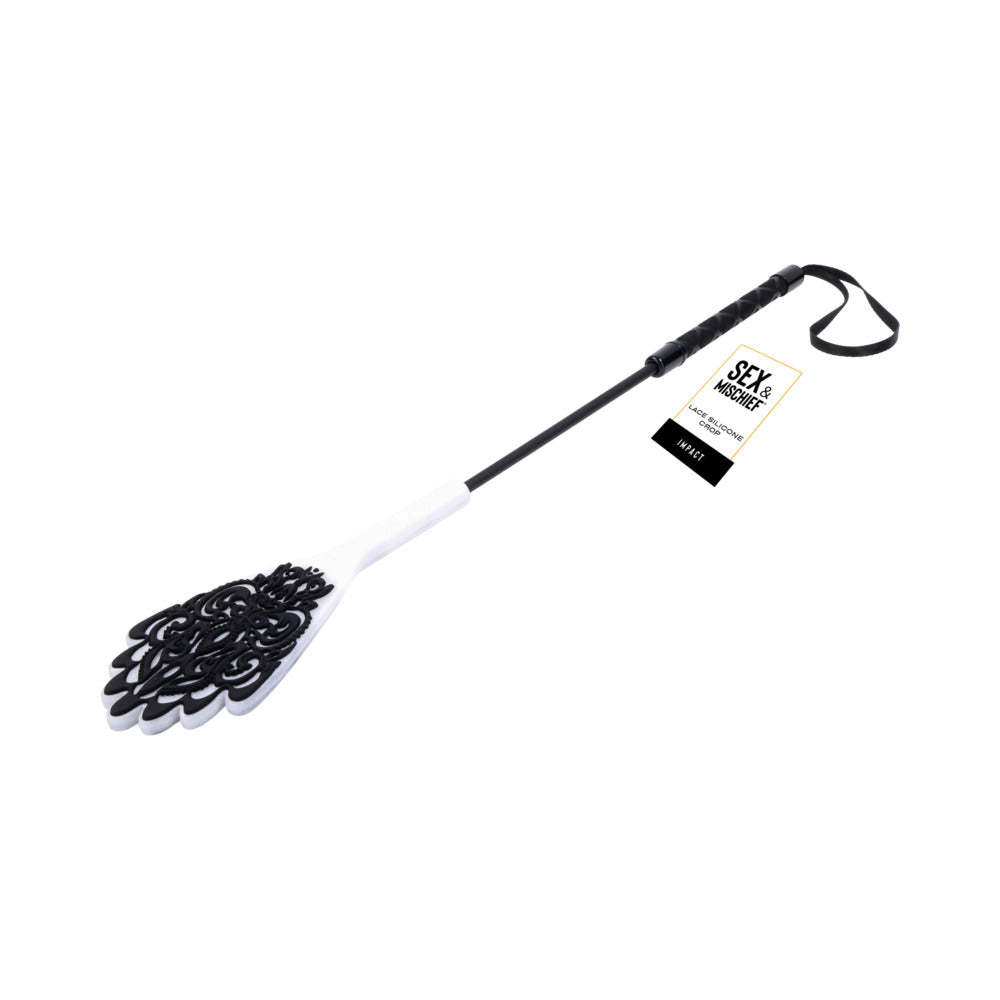 Leave a lasting mark of desire with the Lace Silicone Crop, an elegant and sultry twist on a classic. Featuring a 100% silicone lace-patterned tip, this crop delivers a sharp, tantalizing sting while leaving behind a delicate trace of elegance and allure. The intricate lace design adds a layer of erotic indulgence, making each strike as mesmerizing as it is thrilling. From a teasing caress to a more commanding impact, the Lace Silicone Crop allows every moment to linger with dark romance and seductive power. 100% silicone tip delivers a playful sting Raised imprint design 19" (50cm) in length Wrist loop for secure wear and easy storage Materials: 35% Silicone, 25% Fiberglass, 20% ABS Plastic, 15% Zinc Alloy, 5% Nylon