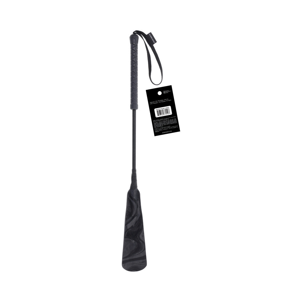 Deliver a silky-smooth sting that demands attention. The Velvet Strike Crop leaves no room for mercy with its marbled faux leather tip, designed to tease, punish, and delight. The elongated head ensures every swing lands with intention, while the braided shaft keeps you in control. Whether it''s a playful flick or a commanding strike, the rubber handle offers a comfortable grip so nothing slips through your fingers. Perfectly balanced for intimate sessions or discreet enough to slip into your travel kit, the Velvet Strike proves that when you wield elegance with power, every strike leaves them breathless. 19.5" long crop with 7" faux leather tip Braided shaft offers durability and refined aesthetics Rubber handle and wrist loop ensures easy wear, storage, and quick access during play Materials: 35% TPE Rubber, 30% PU, 20% Fiberglass, 10% Polyester, 5% Nylon