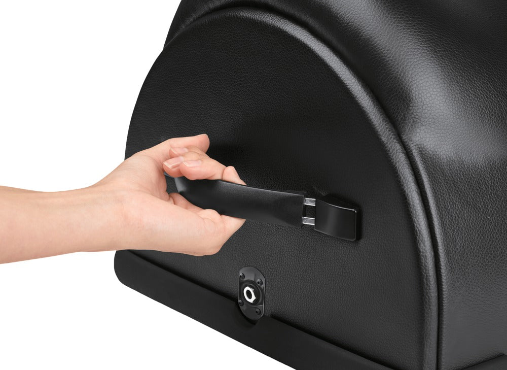 The perfected, luxurious pleasure–giver for hot sex rodeos! Mains-powered The Cowgirl Premium Sex Machine with 2 attachments – Rawhide for external stimulation, Wild West with a dildo for additional inner stimulation. Both of the attachments are made out of high-quality, skin-friendly silicone and pleasure the entire external area from the clitoris to the anus with its pronounced and wonderfully ergonomic stimulating design. The attachment with the rotating dildo combines external stimulation with deep vaginal (or anal) penetration. The attachments are easy to attach and swap. The sex machine has 2 powerful motors for extremely strong vibrations (1200 rpm) in 6 modes and for the multi-speed dildo rotation. Both functions can be controlled separately or at the same time with the remote control on a wire (range: 3 metres) or with the smartphone app via Bluetooth (range: 9 metres). It is also FeelMe and FeelVR compatible for Long Distance Control (anywhere and everywhere in the world). It can also be connected to 2D videos and to the interactive webcam function. The luxurious machine stands out because of its stylish, elegant design and the handmade saddle that is made out of vegan imitation leather that is easy to clean. The saddle also has comfortable padding as well where a person can sit on their own or with a partner. The high-quality cover looks like real leather but its dirt-resistant and therefore easy to clean. The stylish machine has silicone stoppers at the bottom which means that it won't slide around when someone is enjoying a pleasurable ride. The two practical handles mean that the sex machine is easy to carry and transport. There is also a universal power adapter which therefore means that the machine can be used almost anywhere (North America, UK, EU and Australia). The power cord can be removed. Lieferumfang: 1 x The Cowgirl Premium Sex Machine, 2 x silicone attachments (Rawhide and Wild West), 1 x remote control on a wire, 1 x power adapter, 1 x 6 rods and springs for the dildo attachment, 1 x instructions. Sex machine 42.5 cm long, 34 cm wide, 27.7 cm high. Weight 11.9 kg, with attachment 12.9 kg. Imitation leather (polyurethane), silicone, ABS, metal.