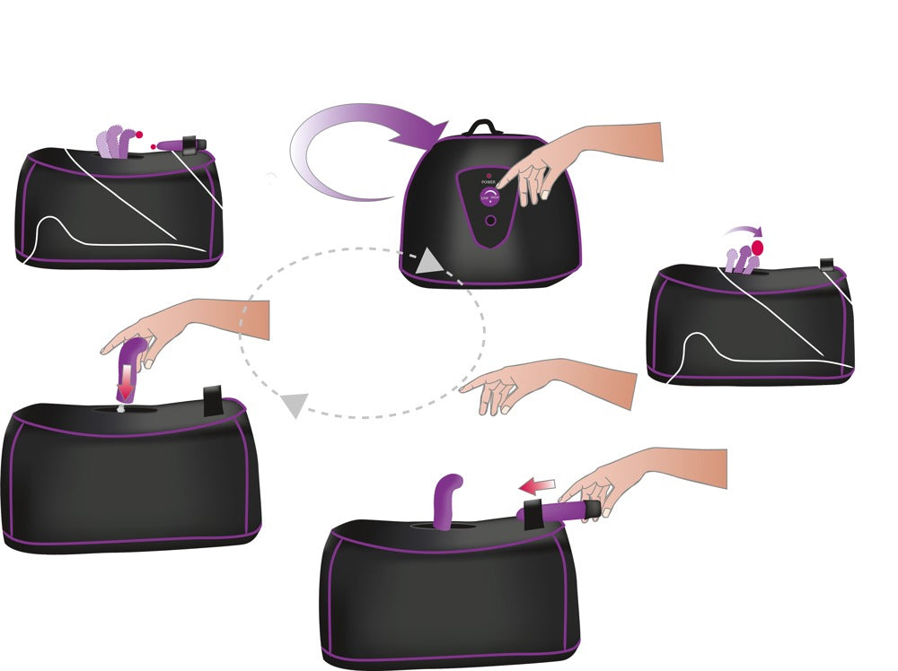 The ultimate solo-sex pleasure! Get ready for the sex machine and its intensive thrust stimulation – and finally, the breathtaking climax! For use, please place the seat on the floor. Connect the machine to the mains using a plug. Then carefully fix the desired attachment to the sex machine and activate the control knob. The vibrator can be placed in the loop provided for external stimulation. Content: 1 vibrator 2 attachments: G-spot attachment and dotted attachment 1 plug Rotating G & P-spot machine has the following dimensions: Length 37 cm, width 27 cm, height 18 cm. Silicone (attachments), ABS with PU coating (vibrator), PU (seat). Please order batteries separately: 2 x AAA